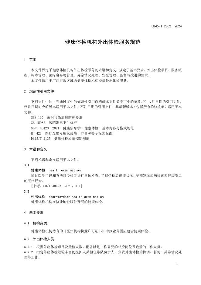 DB45/T 2882-2024 健康体检机构外出体检服务规范
