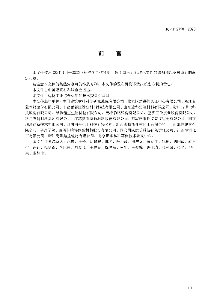 中国建筑材料科学研究总院有限公司、北京国建联信认证中心有限公司、浙江五龙新材股份有限公司、中建西部建设新材料科技有限公司、山东建科建筑材料有限公司、贵州石博士科技股份有限公司、潍坊健宝生物科技有限公司、天津豹鸣股份有限公司、重庆三圣实业股份有限公司、科之杰新材料集团有限公司、江苏奥莱特新材料股份有限公司、石家庄市长安育才建材有限公司、南京瑞迪高新技术有限公司、四川同舟化工科技有限公司、山西桑穆斯建材化工有限公司、山西凯迪建材有限公司、嘉兴学院、山西科腾环保新材料股份有限公司、西安同成建筑科技有限责任公司、