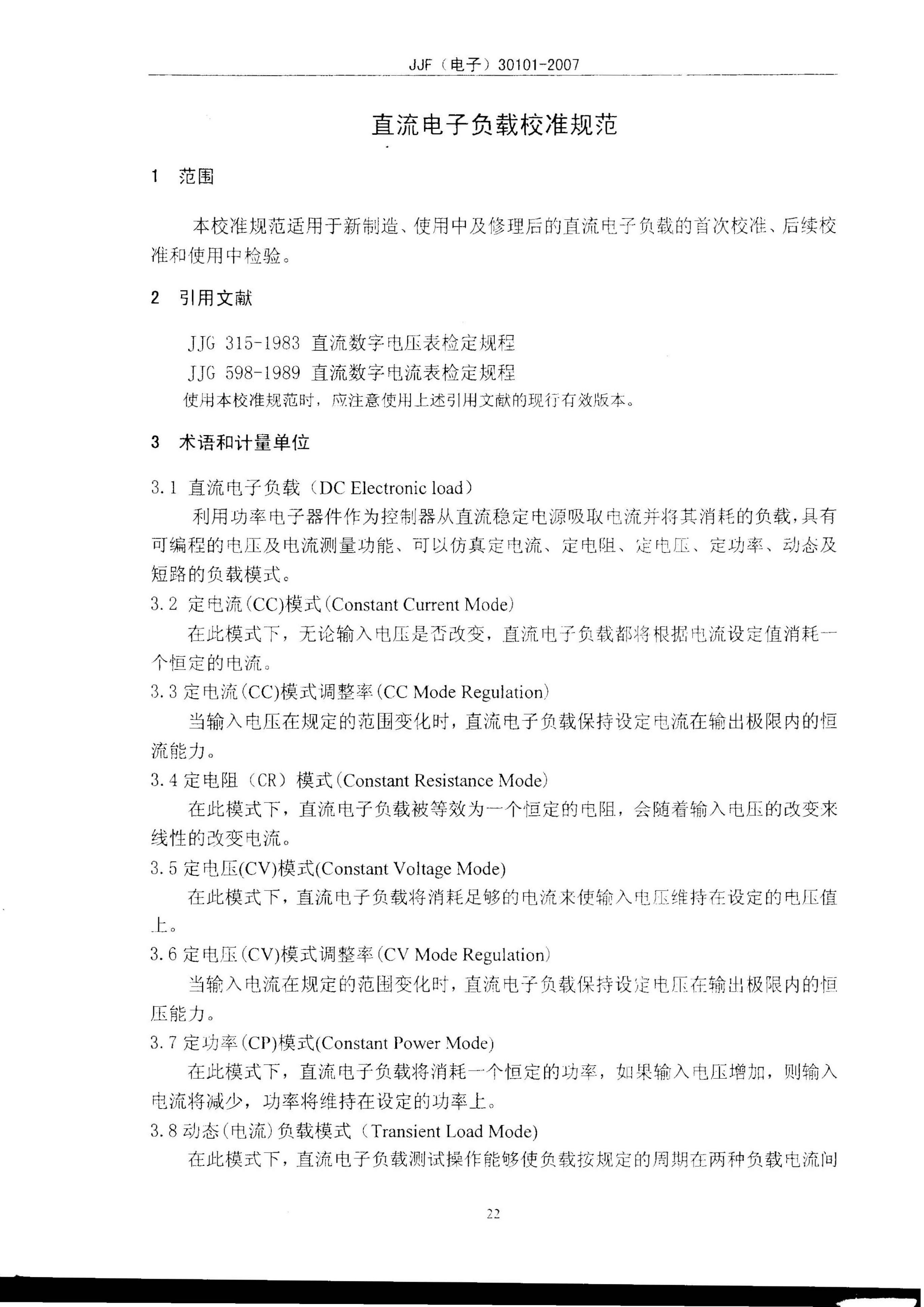 JJF(电子)30101-2007 直流电子负载校准规范