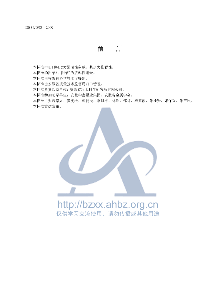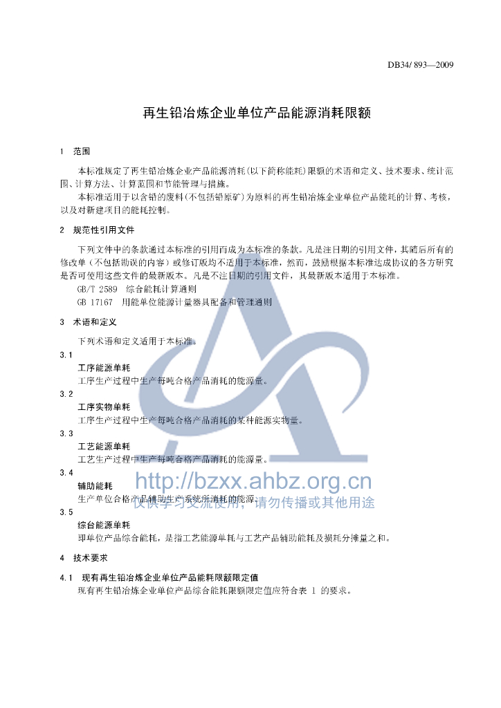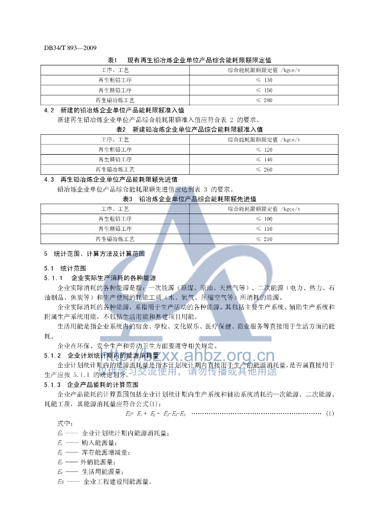 DB34/T 893-2009 再生铅冶炼企业单位产品能源消耗限额
