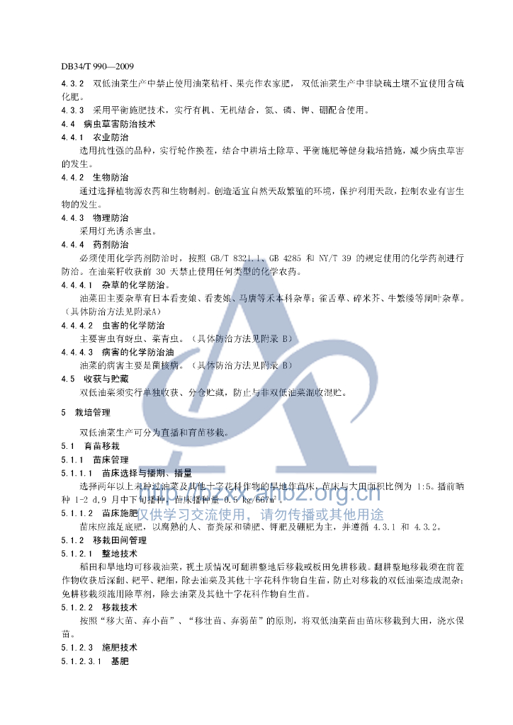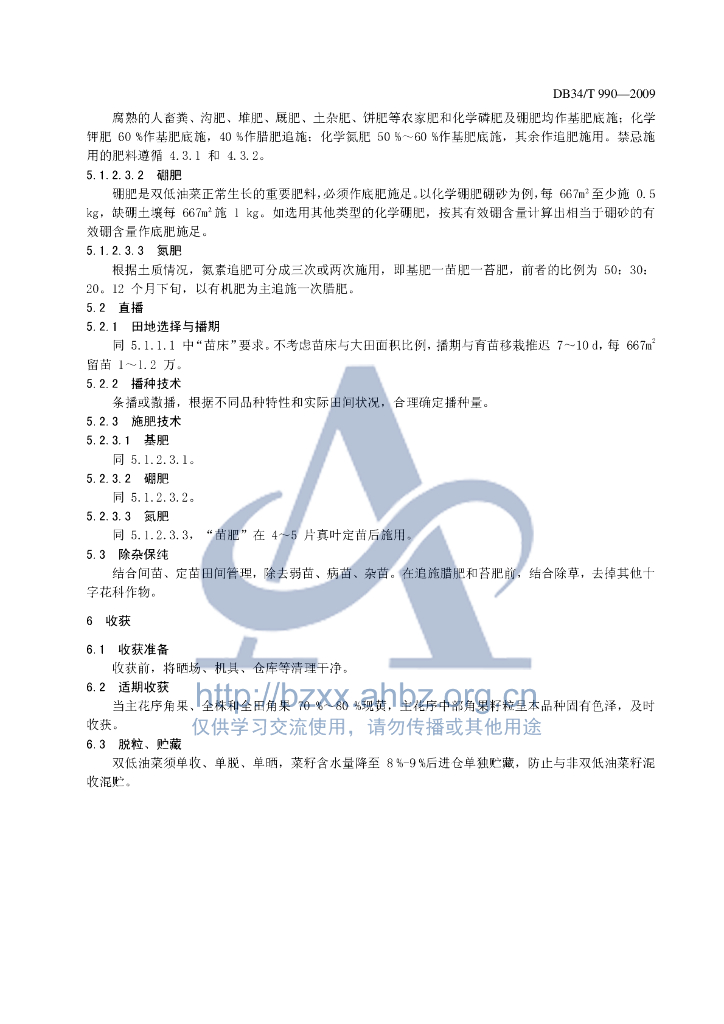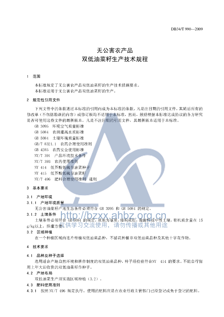 DB34/T 990-2009 无公害农产品 双低油菜籽生产技术规程