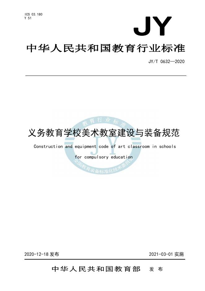 JY/T 0632-2020 义务教育学校美术教室建设与装备规范