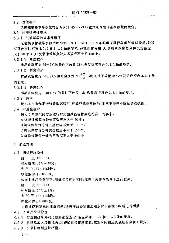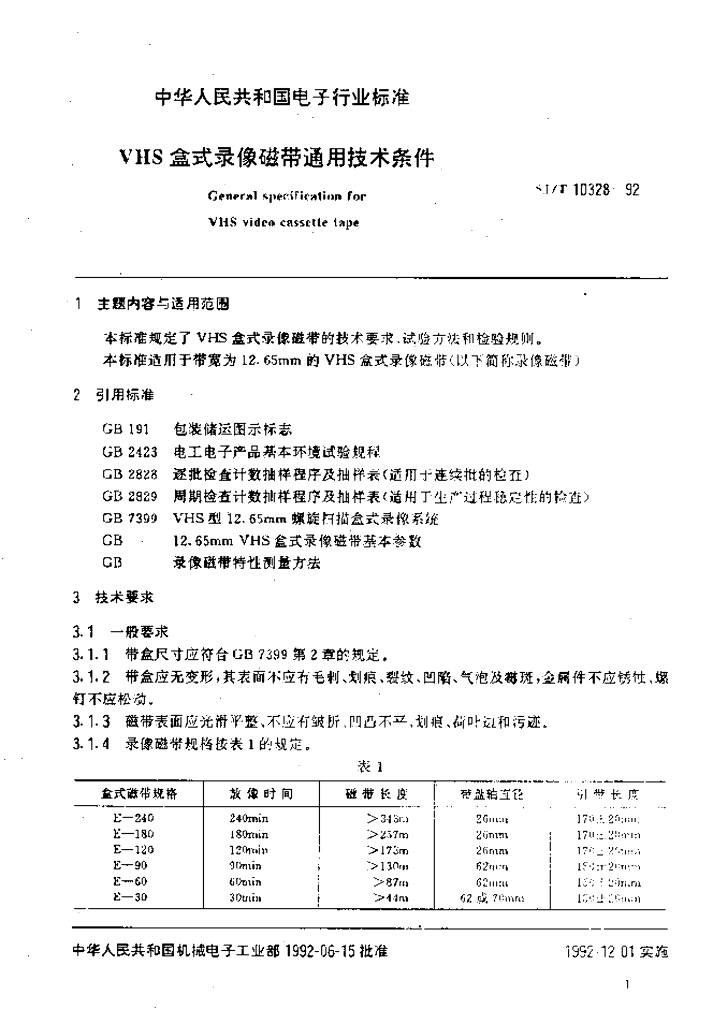 SJ/T 10328-1992 VHS盒式录像磁带通用技术条件