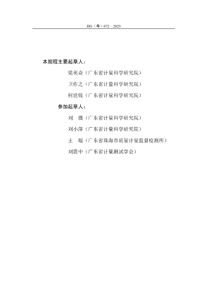 梁英奇(广东省计量科学研究院)、卫作之(广东省计量科学研究院)、何世锐(广东省计量科学研究院)、刘 薇(广东省计量科学研究院)、刘小萍(广东省计量科学研究院)、王 琨(广东省珠海市质量计量监督检测所)、刘震中(广东省计量测试学会)