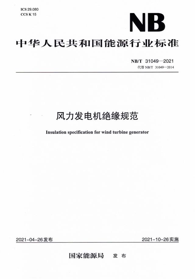 - 代替标准:NB/T 31049-2014