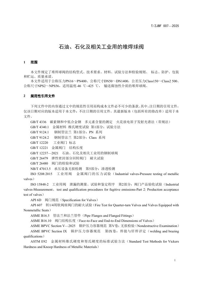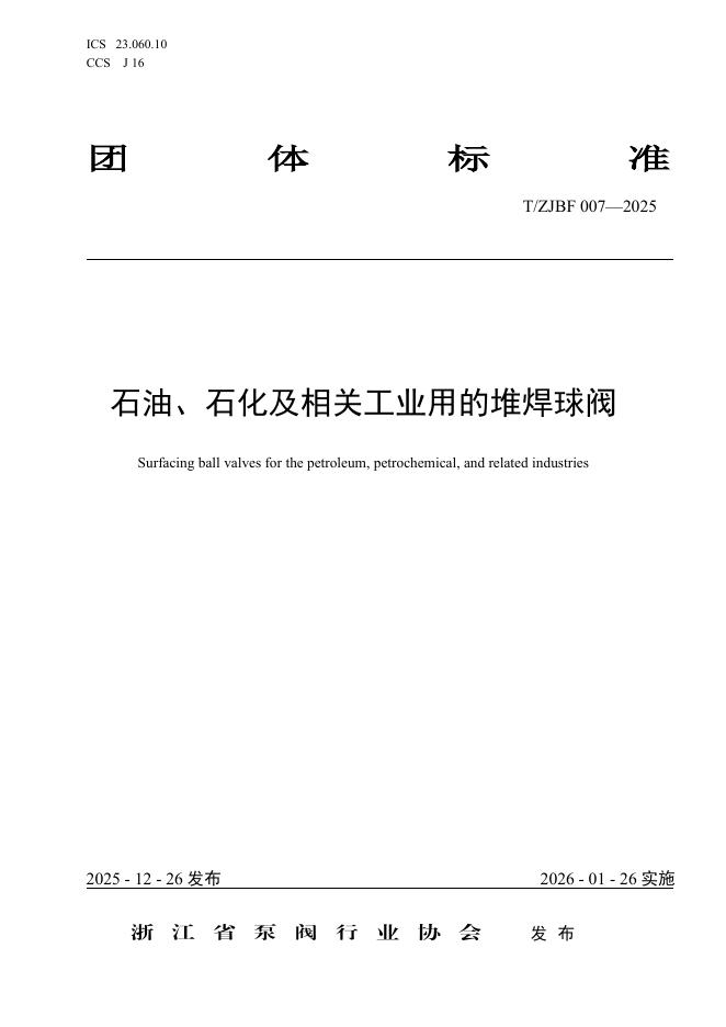 T/ZJBF 007-2025 石油、石化及相关工业用的堆焊球阀