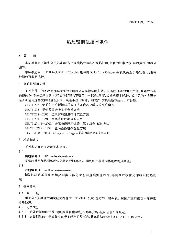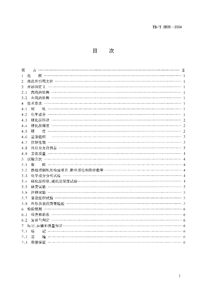 TB/T 2635-2004 热处理钢轨技术条件