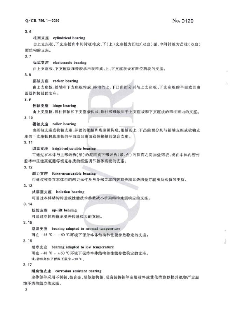 Q/CR 756.1-2020 铁路桥梁支座 第1部分:通用要求