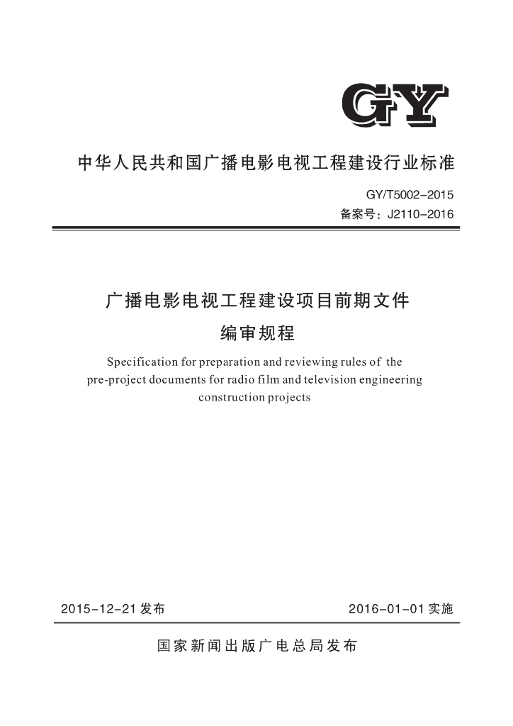 GY/T 5002-2015 广播电影电视工程建设项目前期文件编审规程