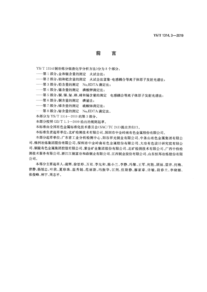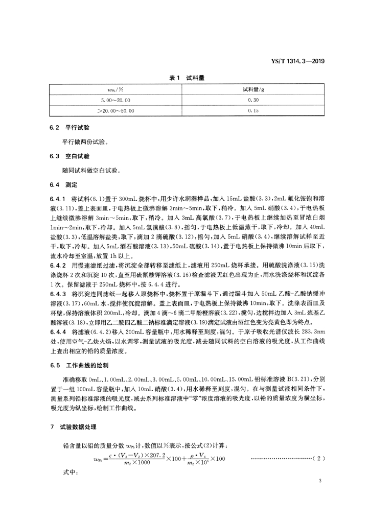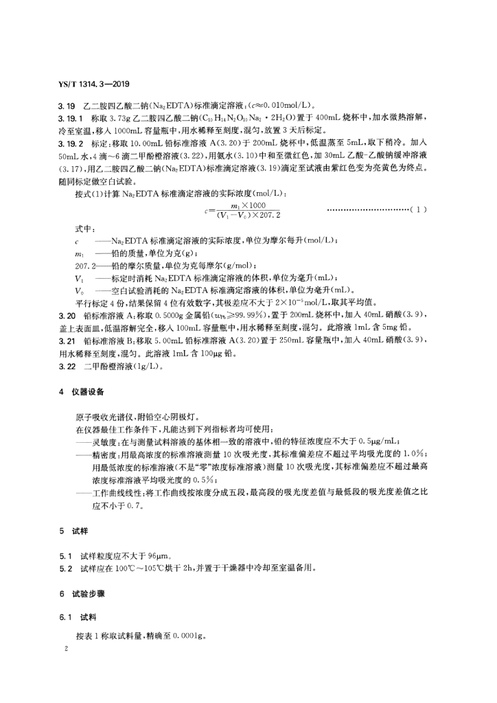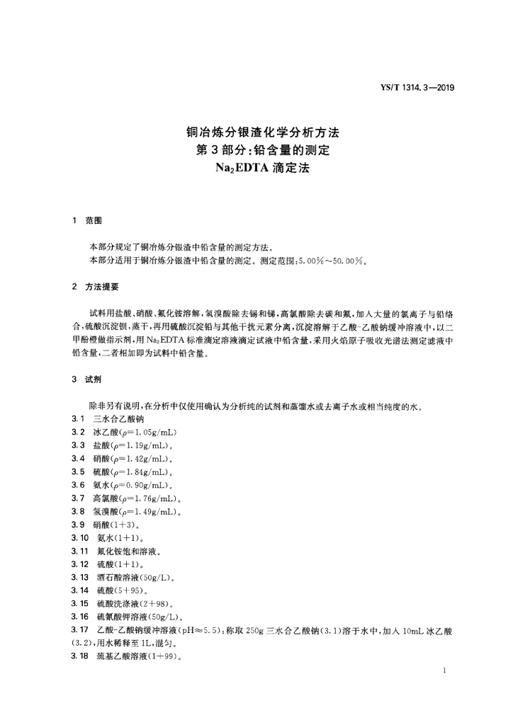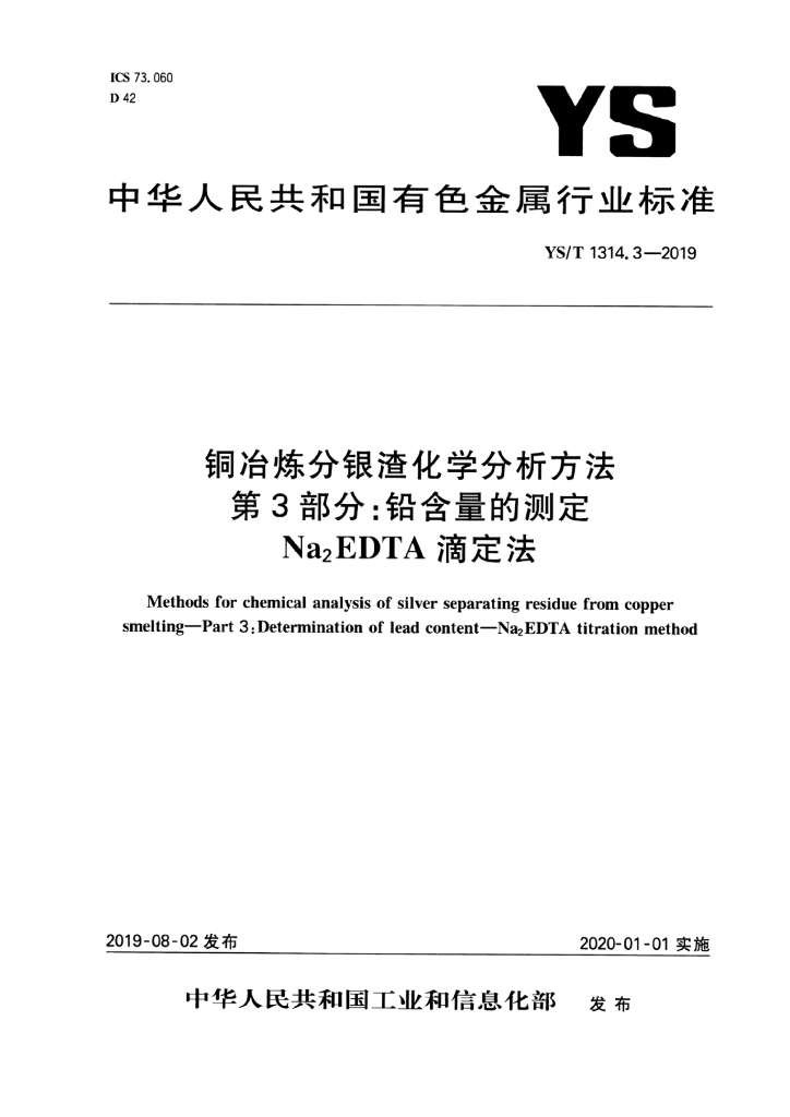 YS/T 1314.3-2019 铜冶炼分银渣化学分析方法 第3部分:铅含量的测定 Na2EDTA滴定法