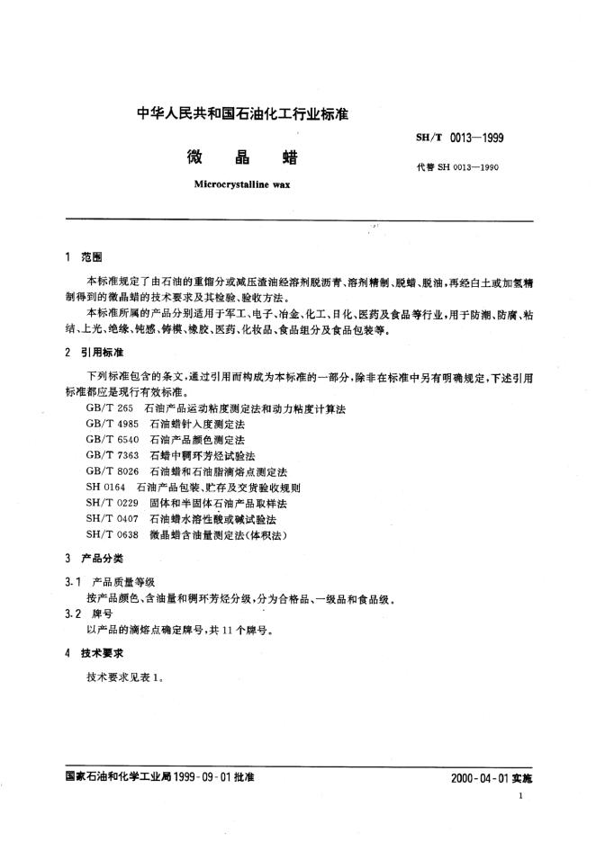 SH 0013-1990 微晶蜡