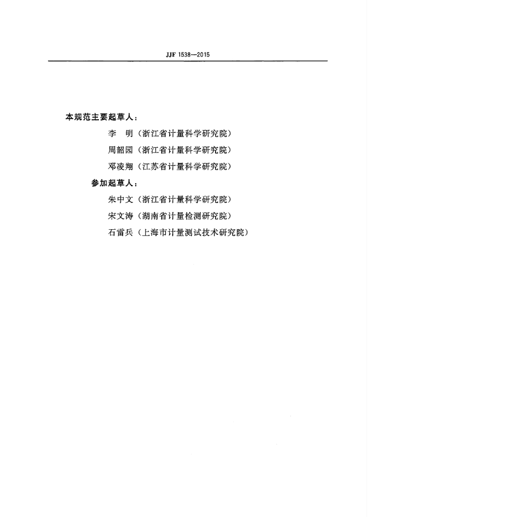 李明(浙江省计量科学研究院)、周韶园(浙江省计量科学研究院)、邓凌翔(江苏省计量科学研究院)、朱中文(浙江省计量科学研究院)、宋文涛(湖南省计量检测研究院)、石雷兵(上海市计量测试技术研究院)