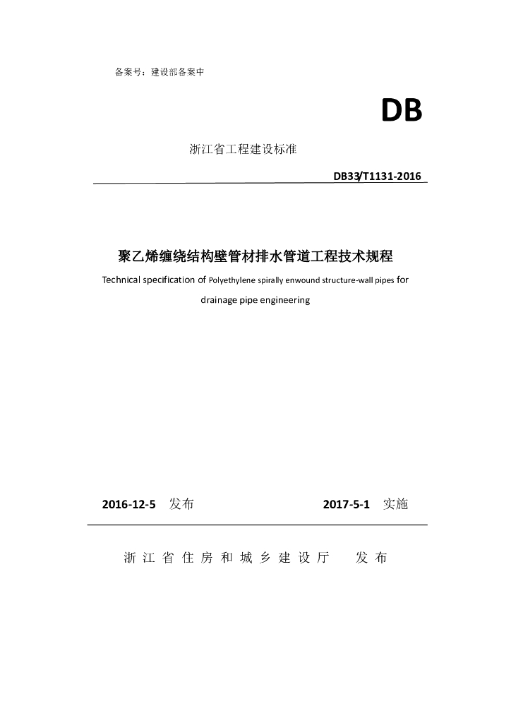 DB33/T 1131-2016 聚乙烯缠绕结构壁管材排水管道工程技术规程