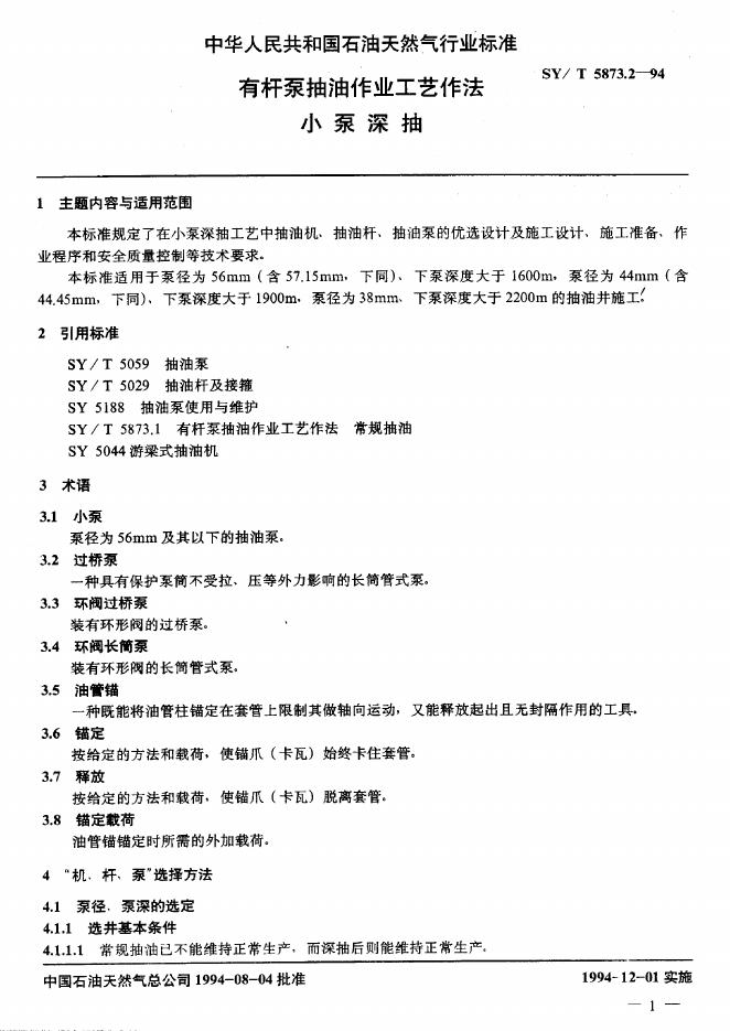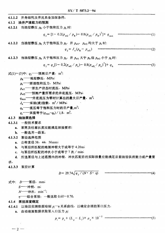 SY/T 5873.2-1994 有杆泵抽油作业工艺作法 小泵深抽