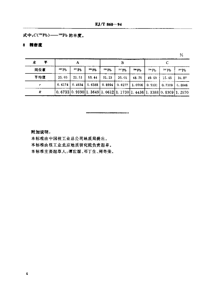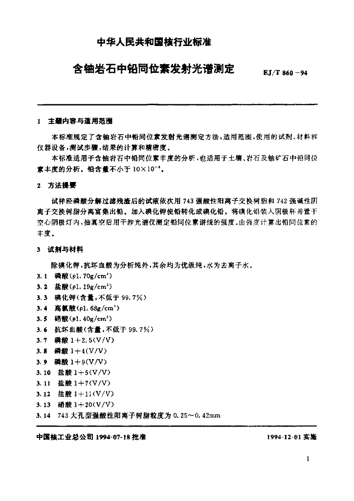 EJ/T 860-1994 含铀岩石中铅同位素发射光谱测定
