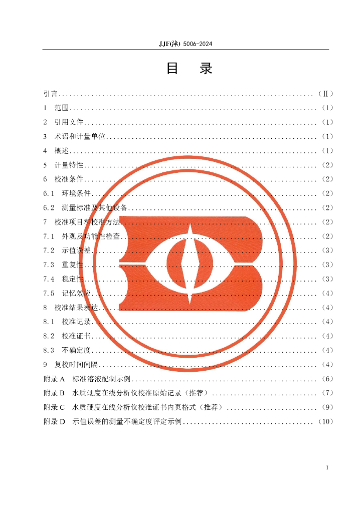 JJF(津)5006-2024 水质硬度在线分析仪校准规范