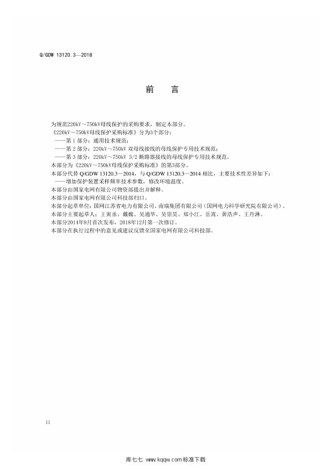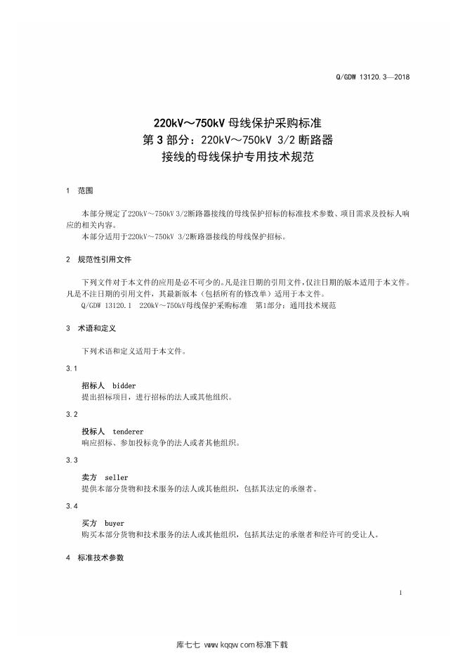 Q/GDW 13120.3-2018 220kV~750kV母线保护采购标准 第3部分:220kV~750kV 3 2断路器接线 的母线保护专用技术规范