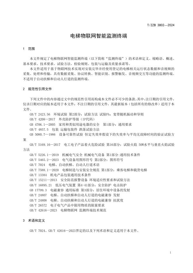 T/ZZB 3802-2024 电梯物联网智能监测终端