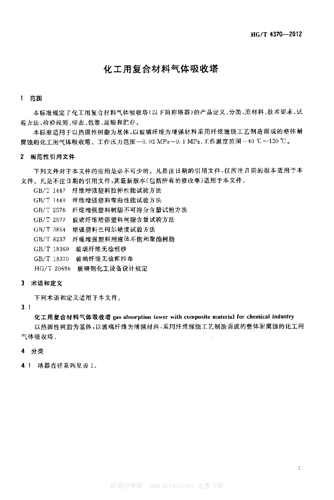 HG/T 4370-2012 化工用复合材料气体吸收塔