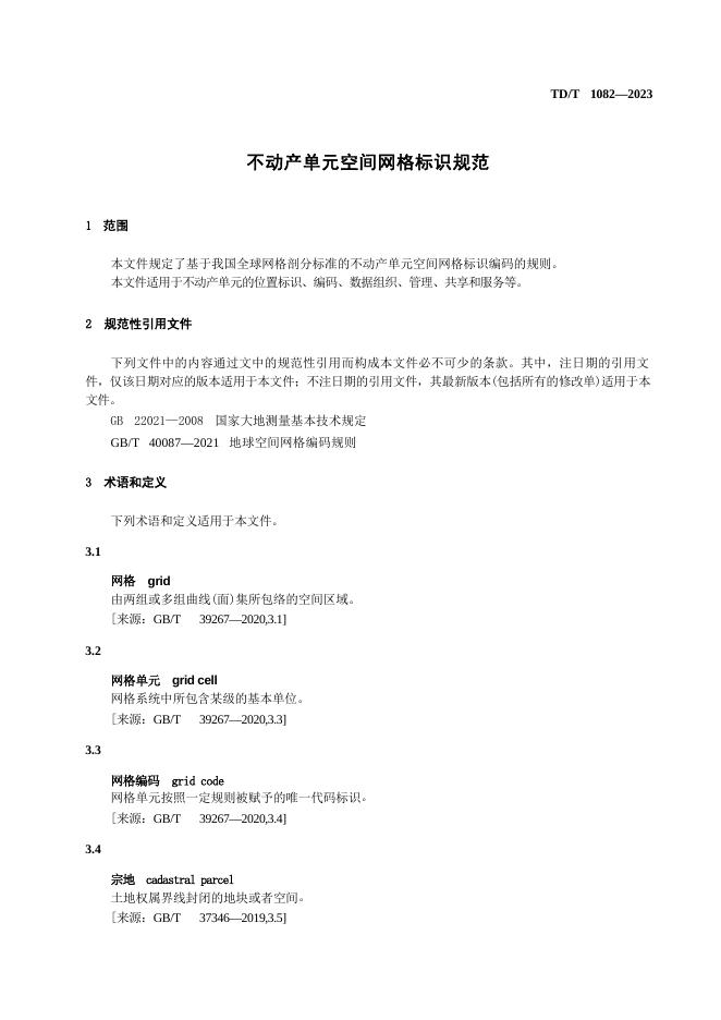 TD/T 1082-2023 不动产单元空间网格标识规范