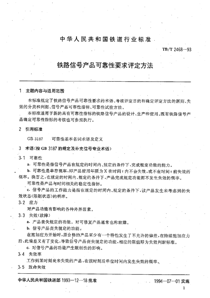 TB/T 2468-1993 铁路信号产品可靠性要求评定方法