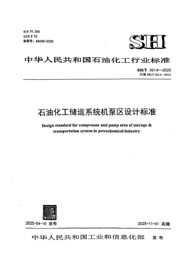 SH/T 3014-2025 石油化工储运系统机泵区设计标准