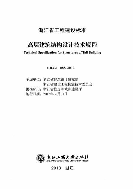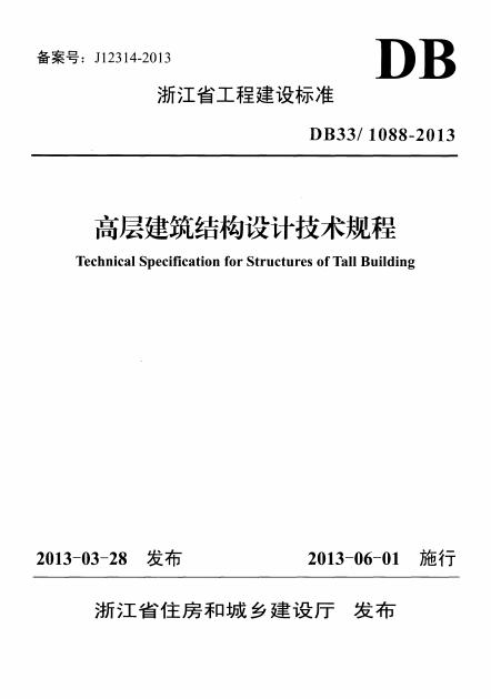 DB33/ 1088-2013 浙江省高层建筑结构设计技术规程
