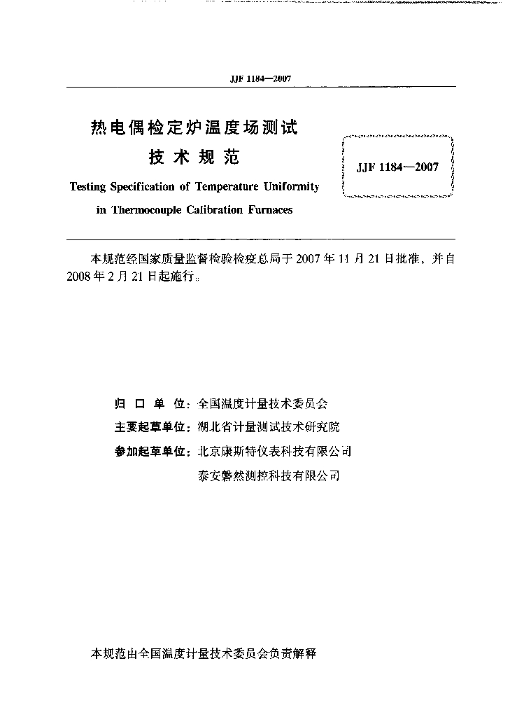 李洪卫(湖北省计量测试技术研究院)、刘大木(湖北省计量测试技术研究院)、王阳(湖北省计量测试技术研究院)、何欣(北京康斯特仪表科技有限公司)、徐军(泰安磐然测控科技有限公司)、安文霞(湖北省计量测试技术研究院)、李志庆(湖北省计量测试技术研究院)