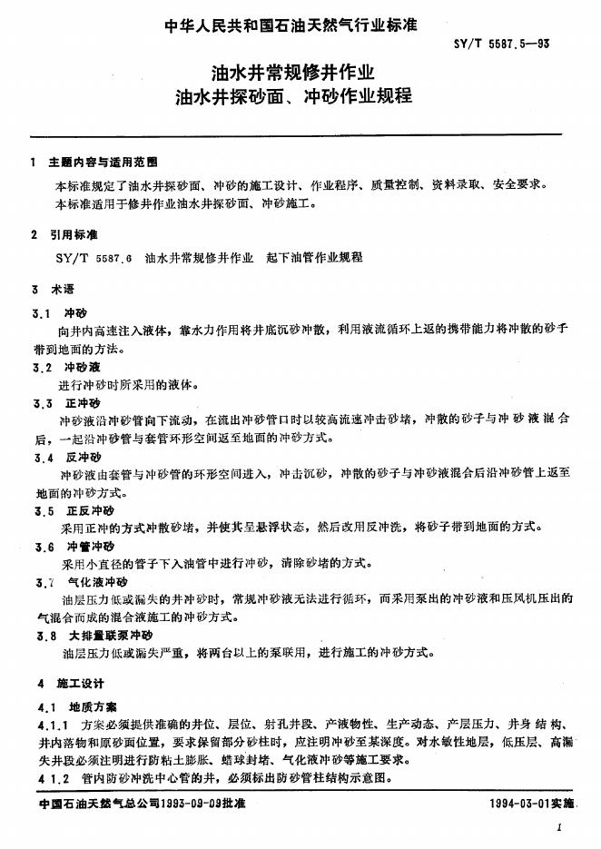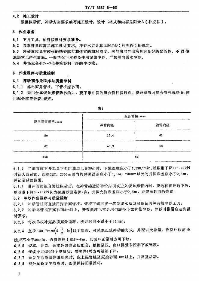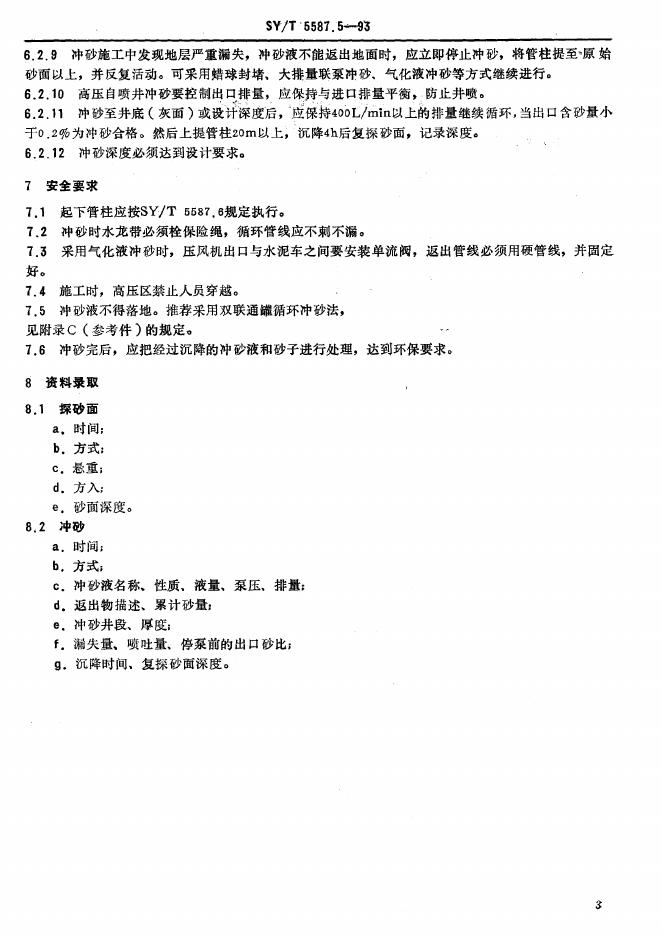 SY/T 5587.5-1993 油水井常规修井作业 油水井探砂面、冲砂作业规程