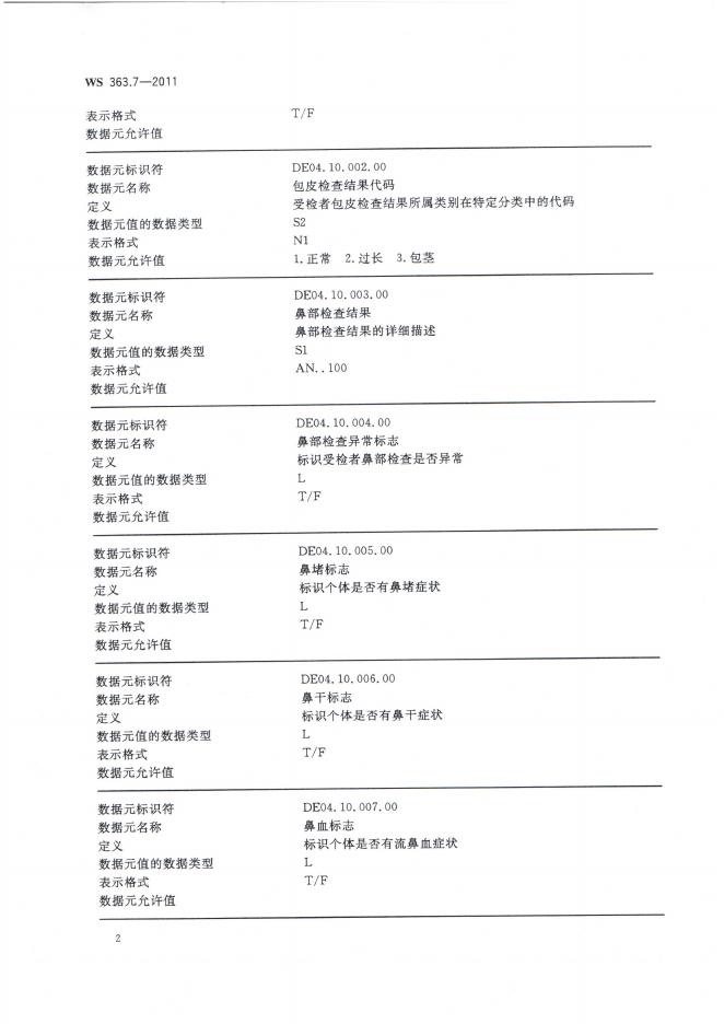 WS 363.7-2011 卫生信息数据元目录 第7部分:体格检查