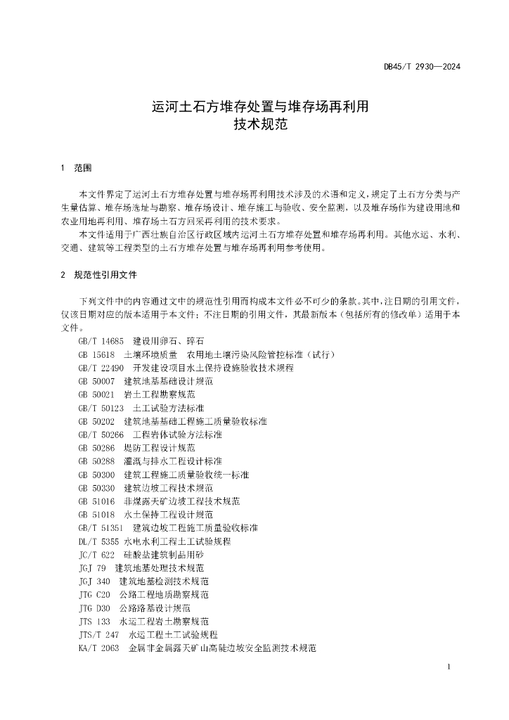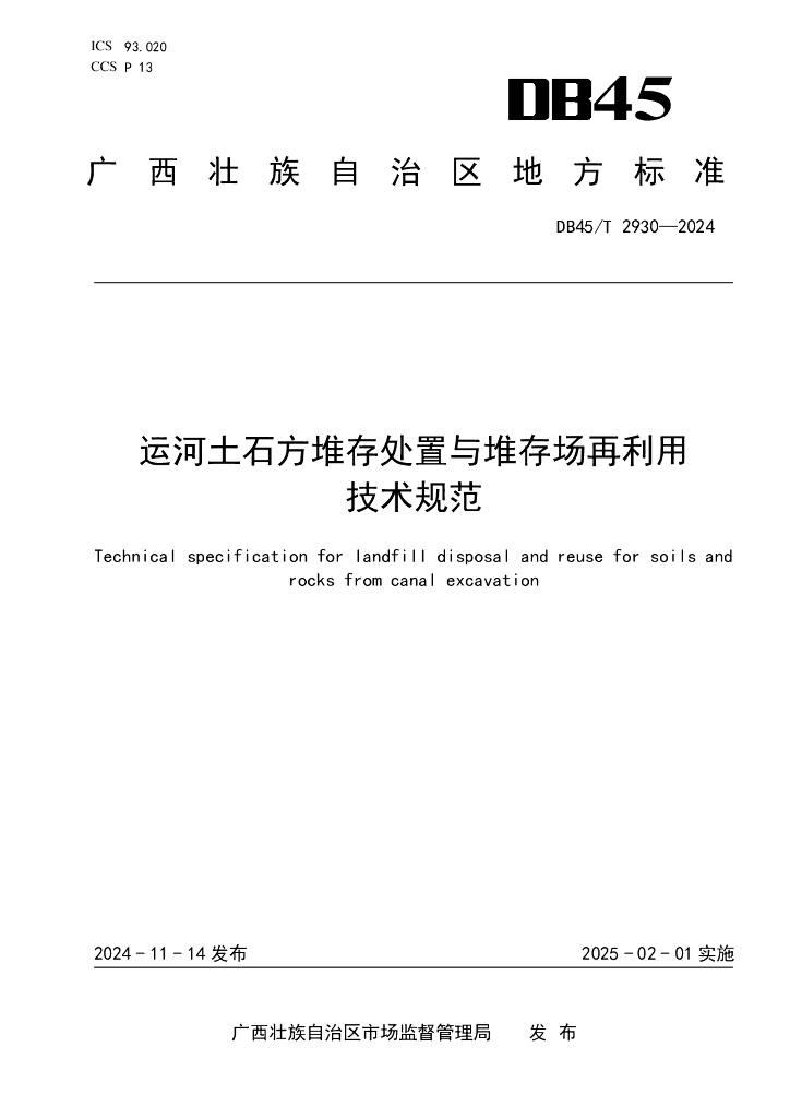 DB45/T 2930-2024 运河土石方堆存处置与堆存场再利用技术规范