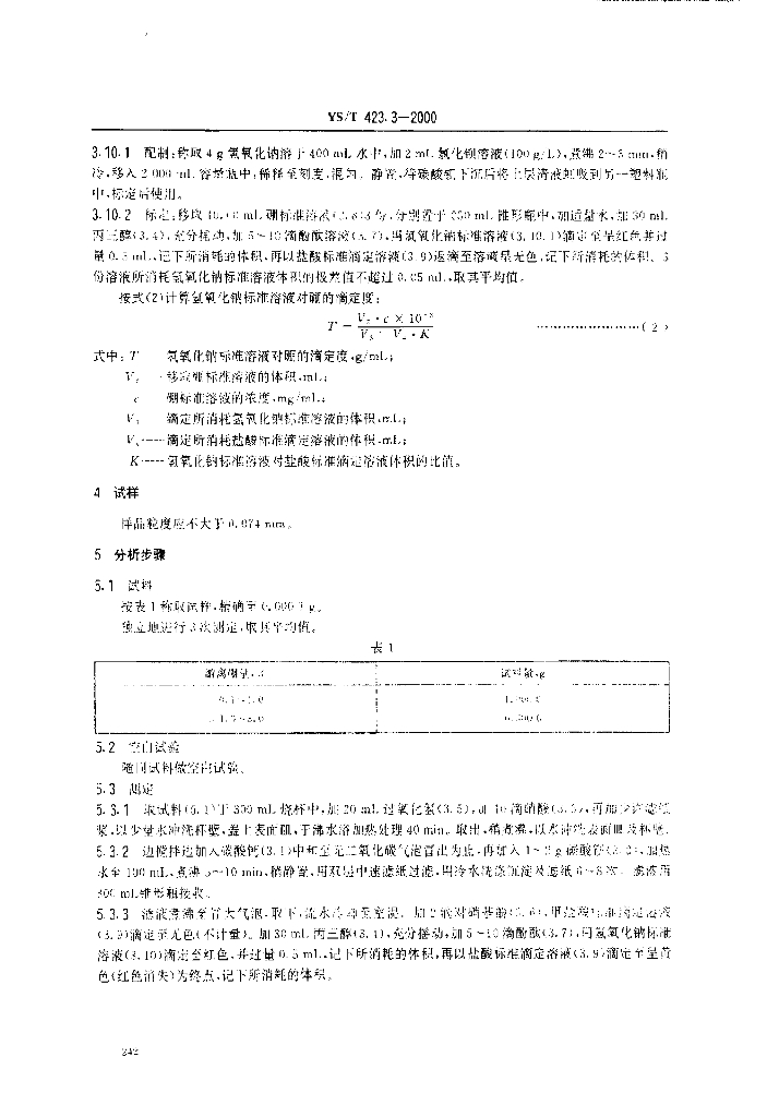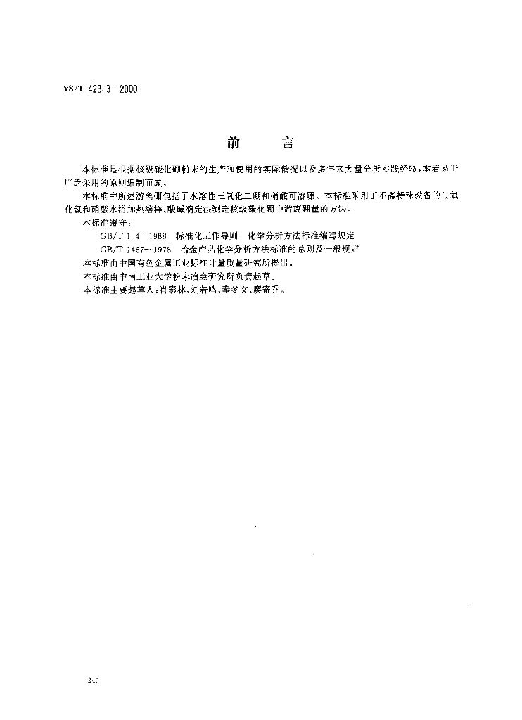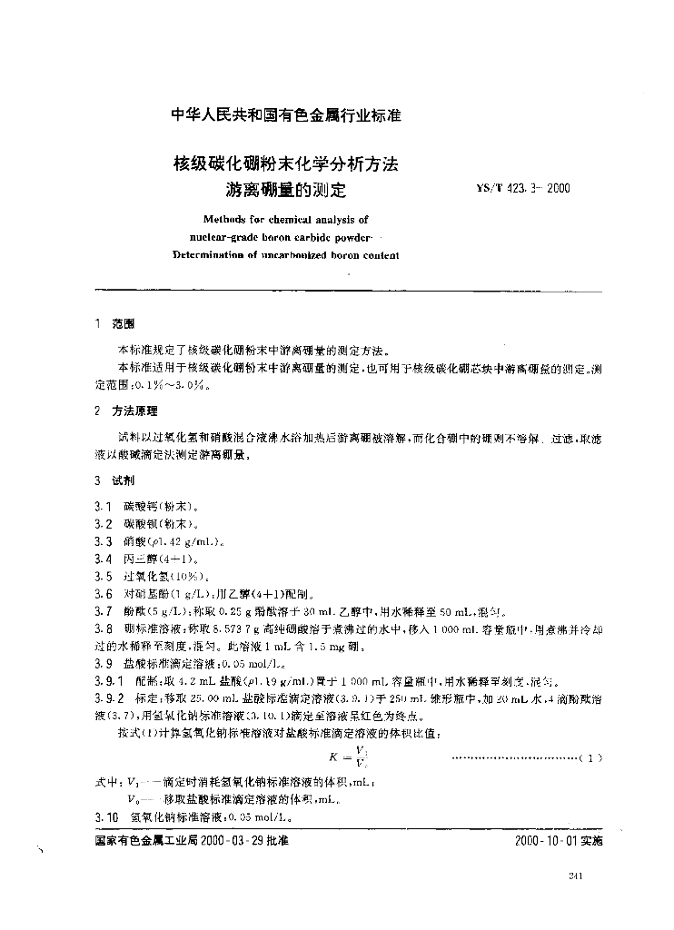 YS/T 423.3-2000 核级碳化硼粉末化学分析方法游离硼量的测定