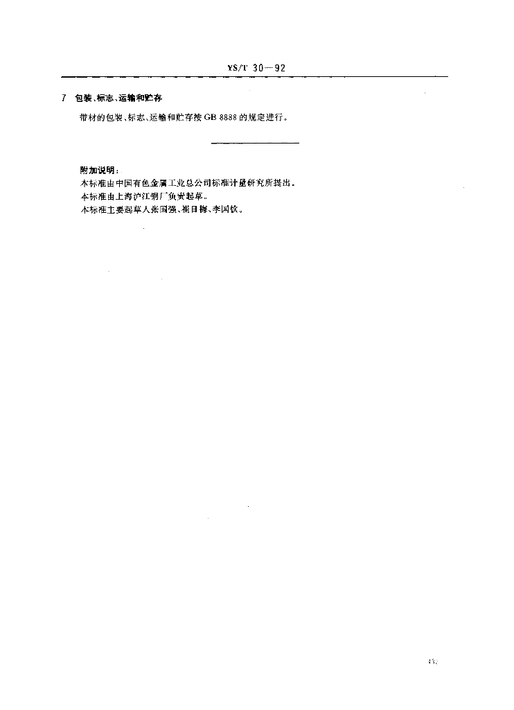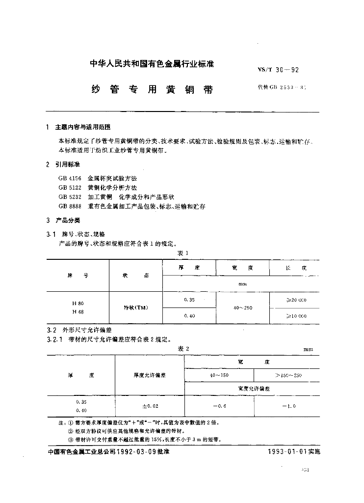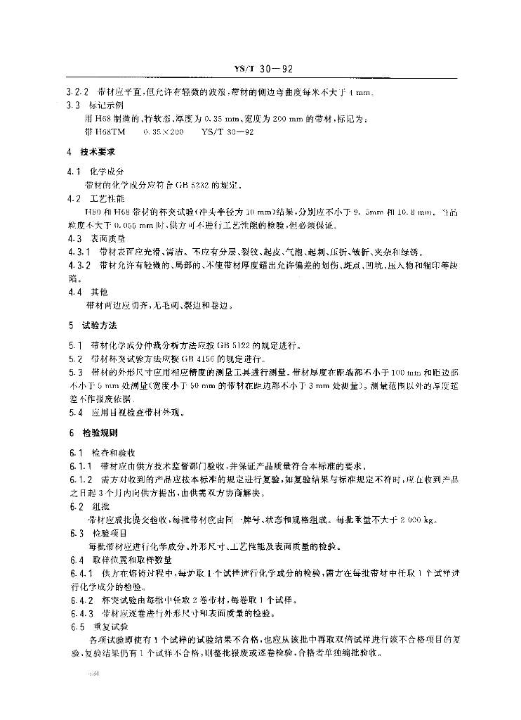 YS/T 30-1992 纱管专用黄铜带