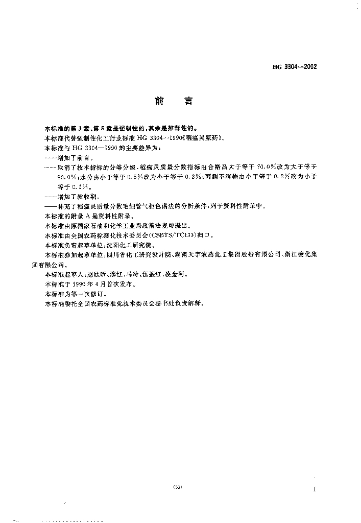 HG 3304-2002 稻瘟灵原药