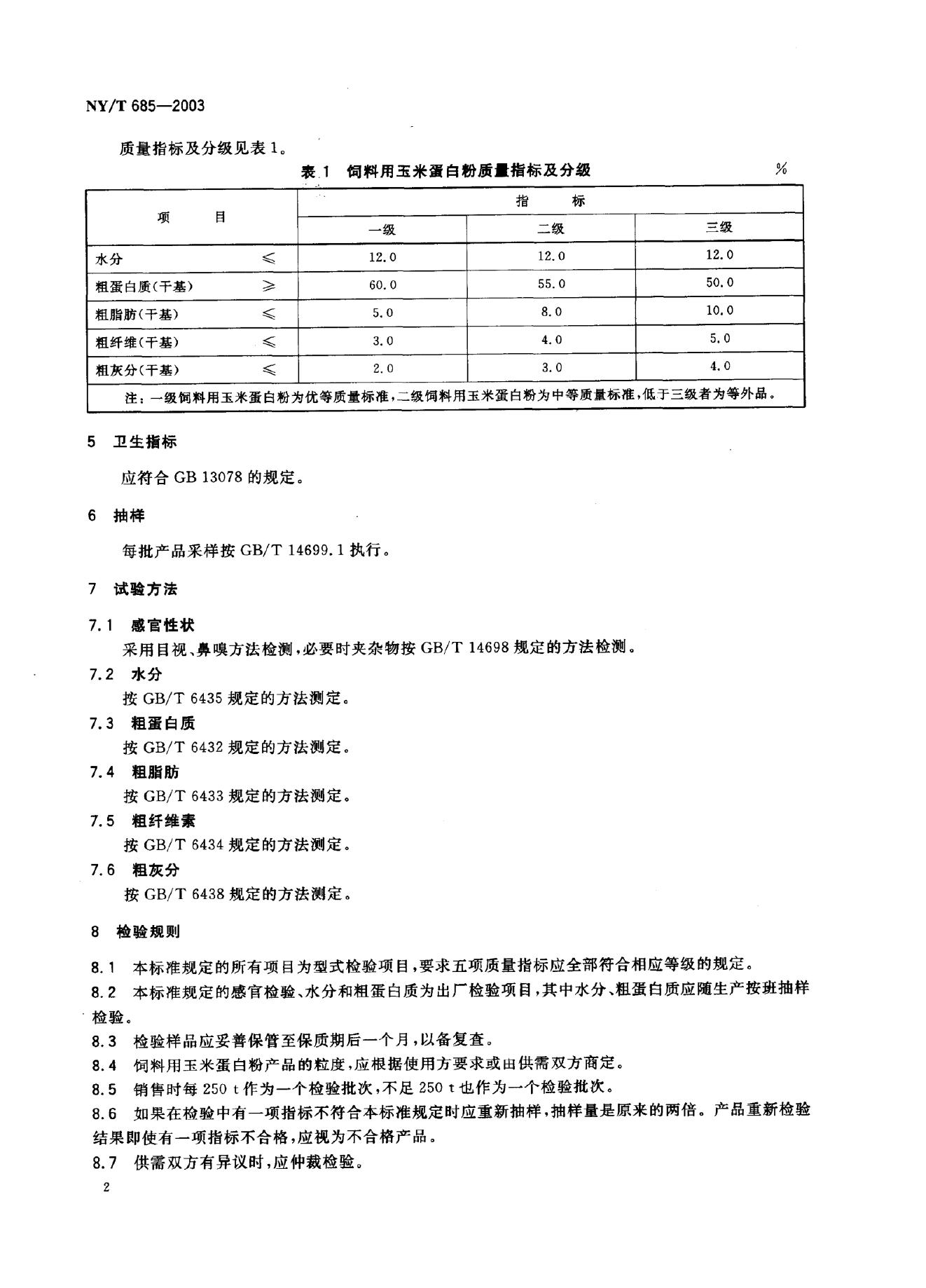 NY/T 685-2003 饲料用玉米蛋白粉