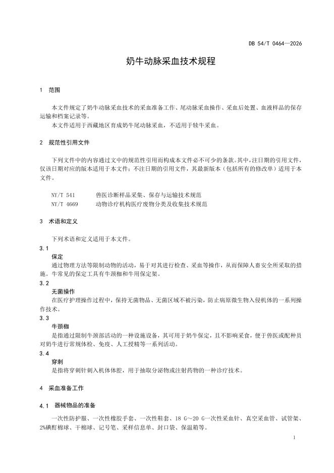DB54/T 0564-2026 奶牛动脉采血技术规程