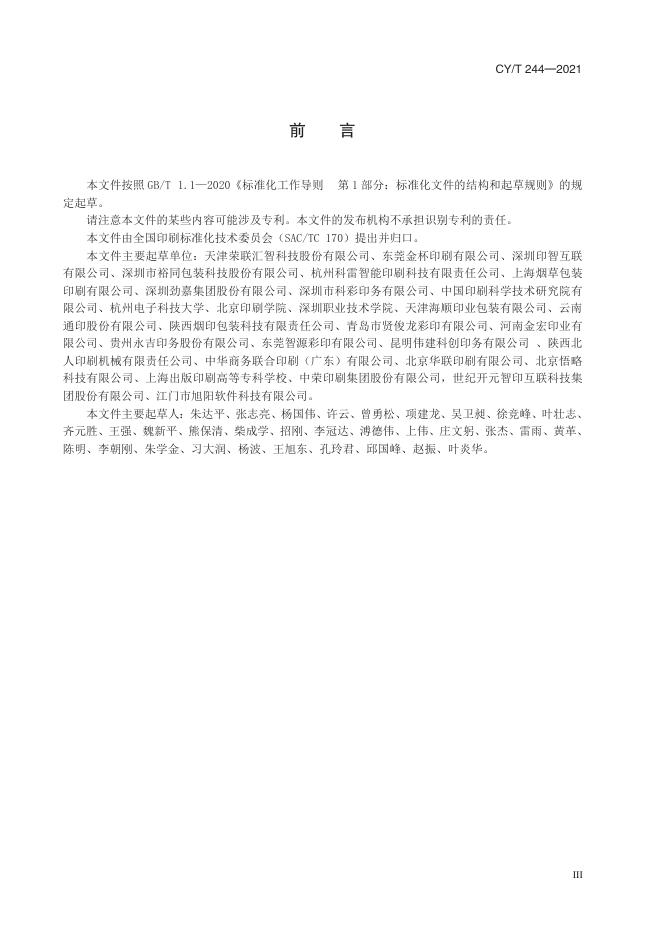 天津荣联汇智科技股份有限公司、东莞金杯印刷有限公司、深圳印智互联有限公司、深圳市裕同包装科技股份有限公司、杭州科雷智能印刷科技有限责任公司、上海烟草包装印刷有限公司、深圳劲嘉集团股份有限公司、深圳市科彩印务有限公司、中国印刷科学技术研究院有限公司、杭州电子科技大学、北京印刷学院、深圳职业技术学院、天津海顺印业包装有限公司、云南通印股份有限公司、陕西烟印包装科技有限责任公司、青岛市贤俊龙彩印有限公司、河南金宏印业有限公司、贵州永吉印务股份有限公司、东莞智源彩印有限公司、昆明伟建科创印务有限公司、陕西北人印刷