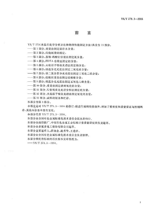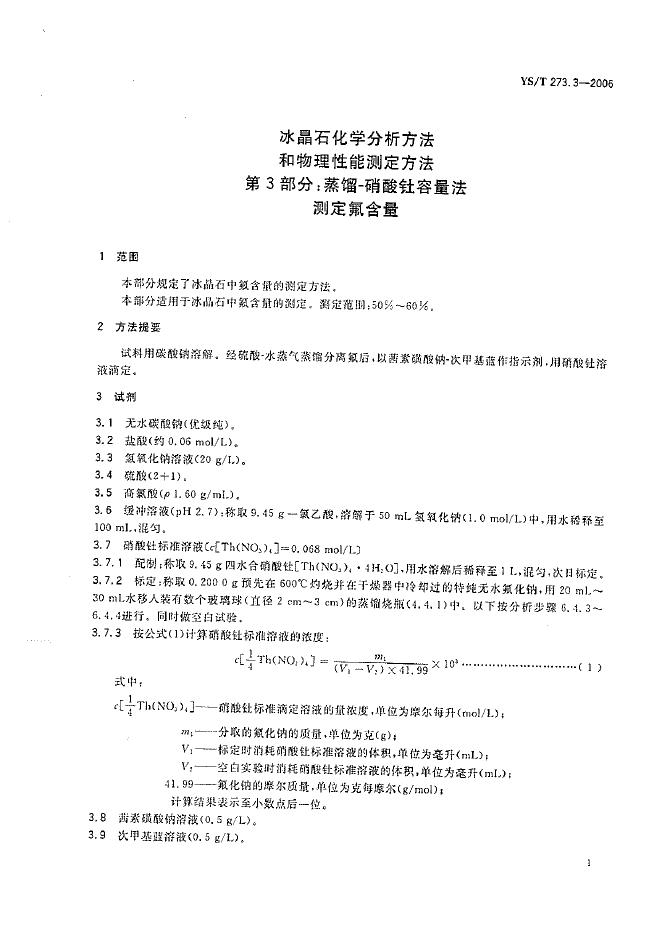 YS/T 273.3-2006 冰晶石化学分析方法和物理性能测定方法 第3部分:蒸馏—硝酸钍容量法测定氟含量