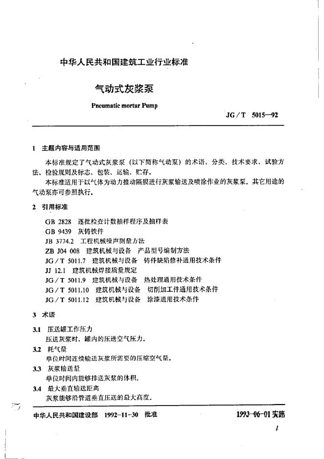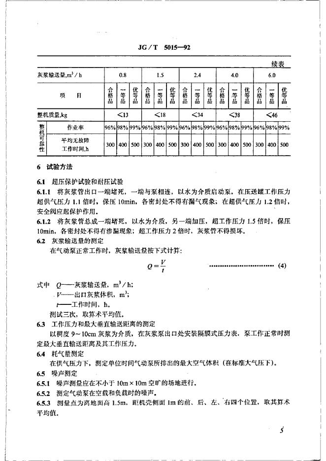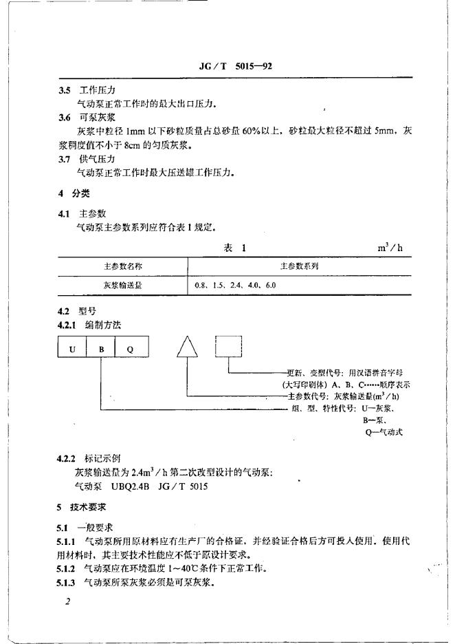 JG/T 5015-1992 气动式灰浆泵