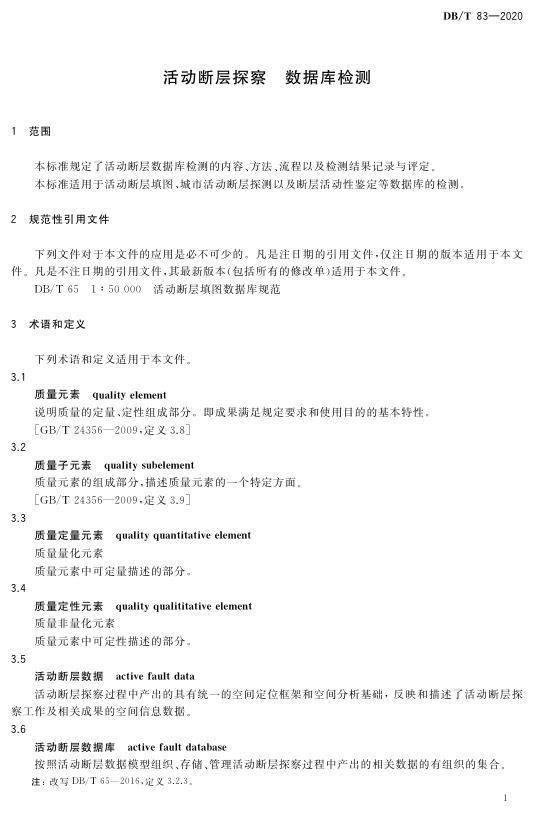 DB/T 83-2020 活动断层探察 数据库检测