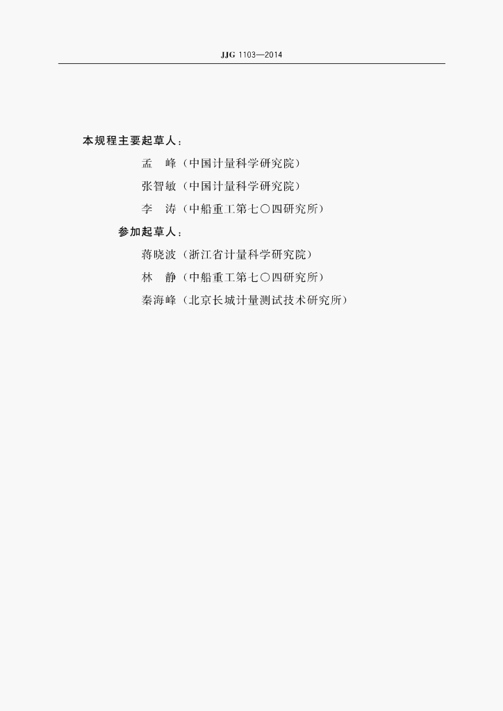 孟峰(中国计量科学研究院)、张智敏(中国计量科学研究院)、李涛(中船重工第七0四研究所)、蒋晓波(浙江省计量科学研究院)、林静(中船重工第七0四研究所)、秦海峰(北京长城计量测试技术研究所)