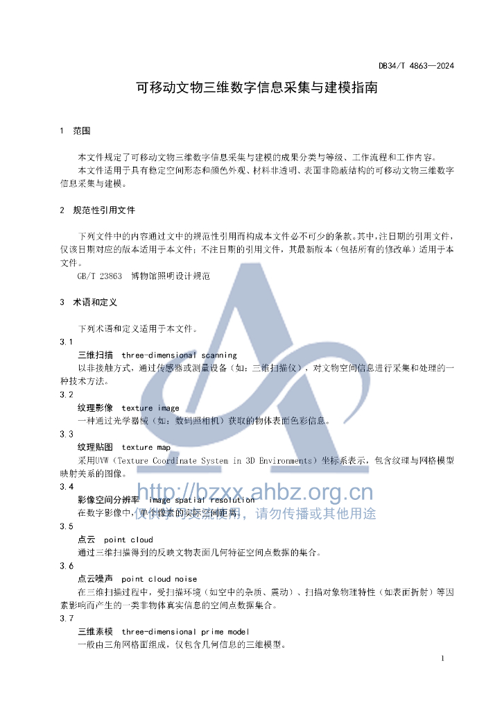 DB34/T 4863-2024 可移动文物三维数字信息采集与建模指南