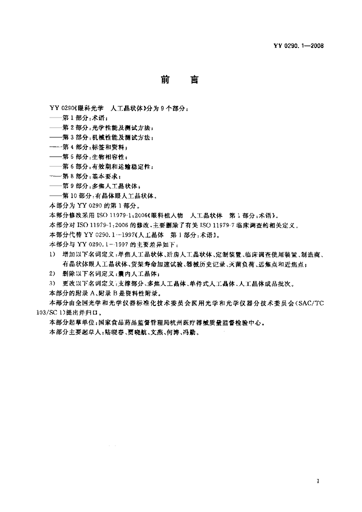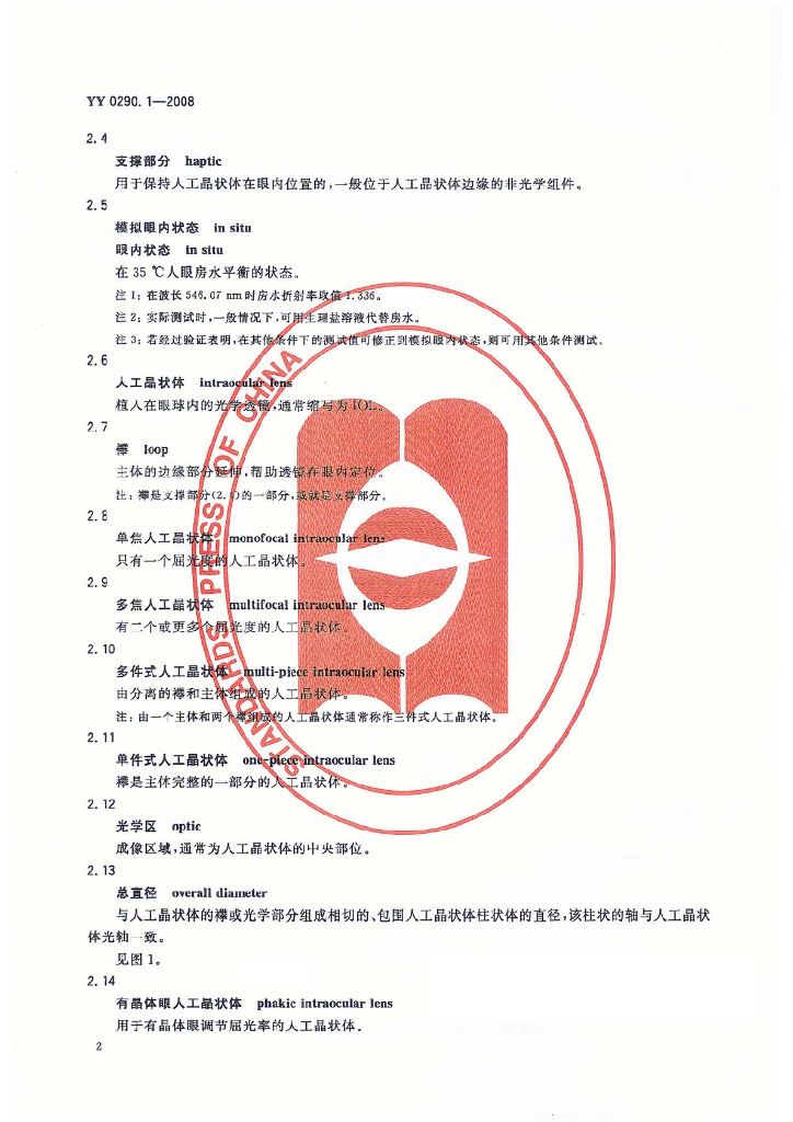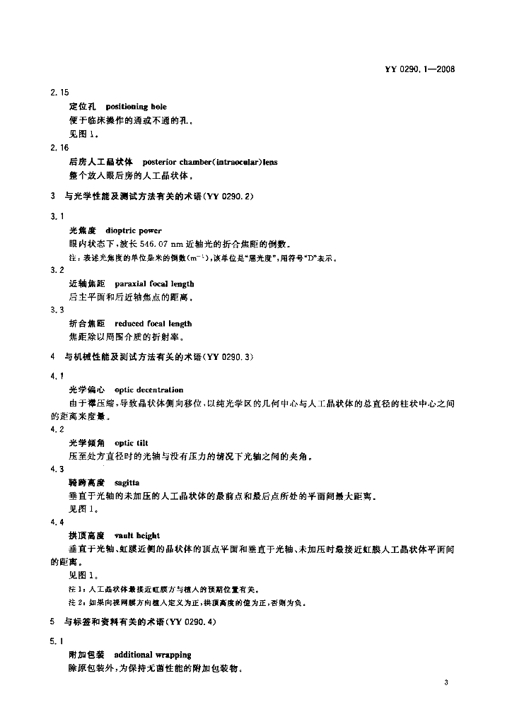YY 0290.1-2008 眼科光学人工 晶状体 第1部分:术语
