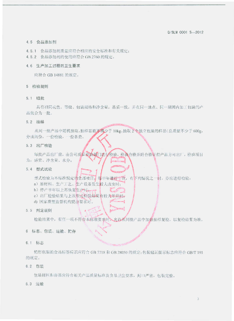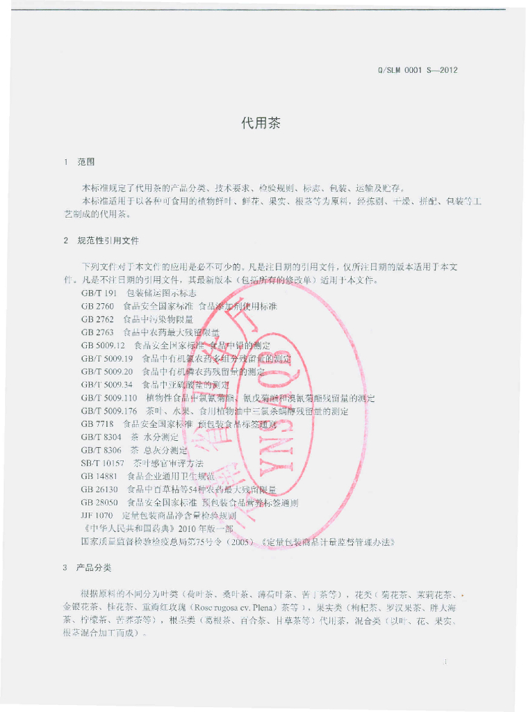 Q/SLM 0001S-2012 代用茶