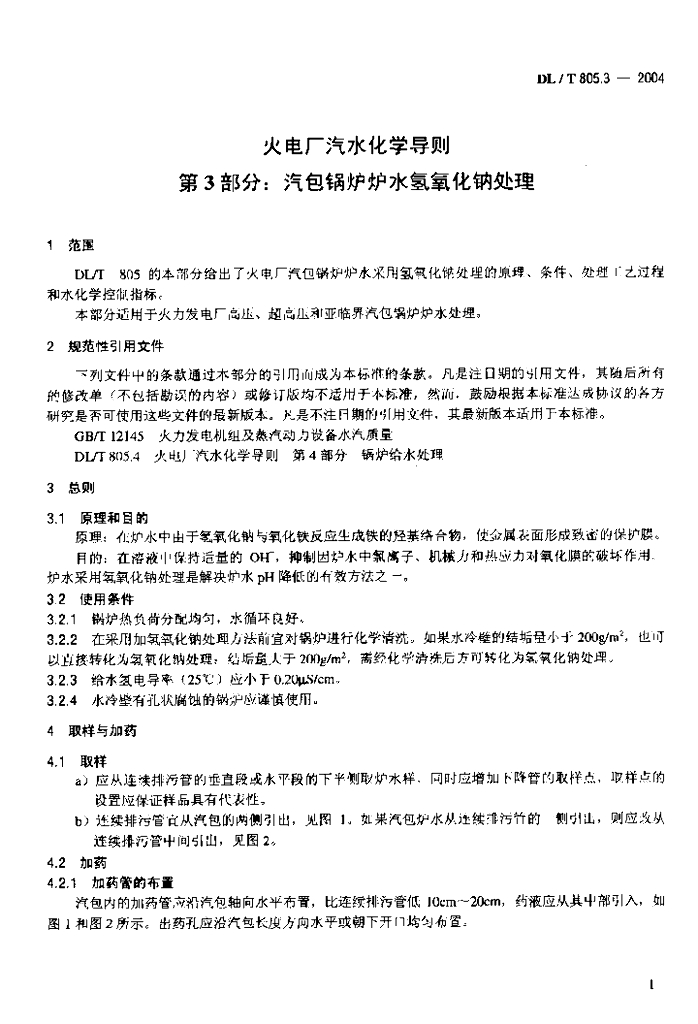DL/T 805.3-2004 火电厂汽水化学导则 第3部分:汽包锅炉炉水氢氧化钠处理