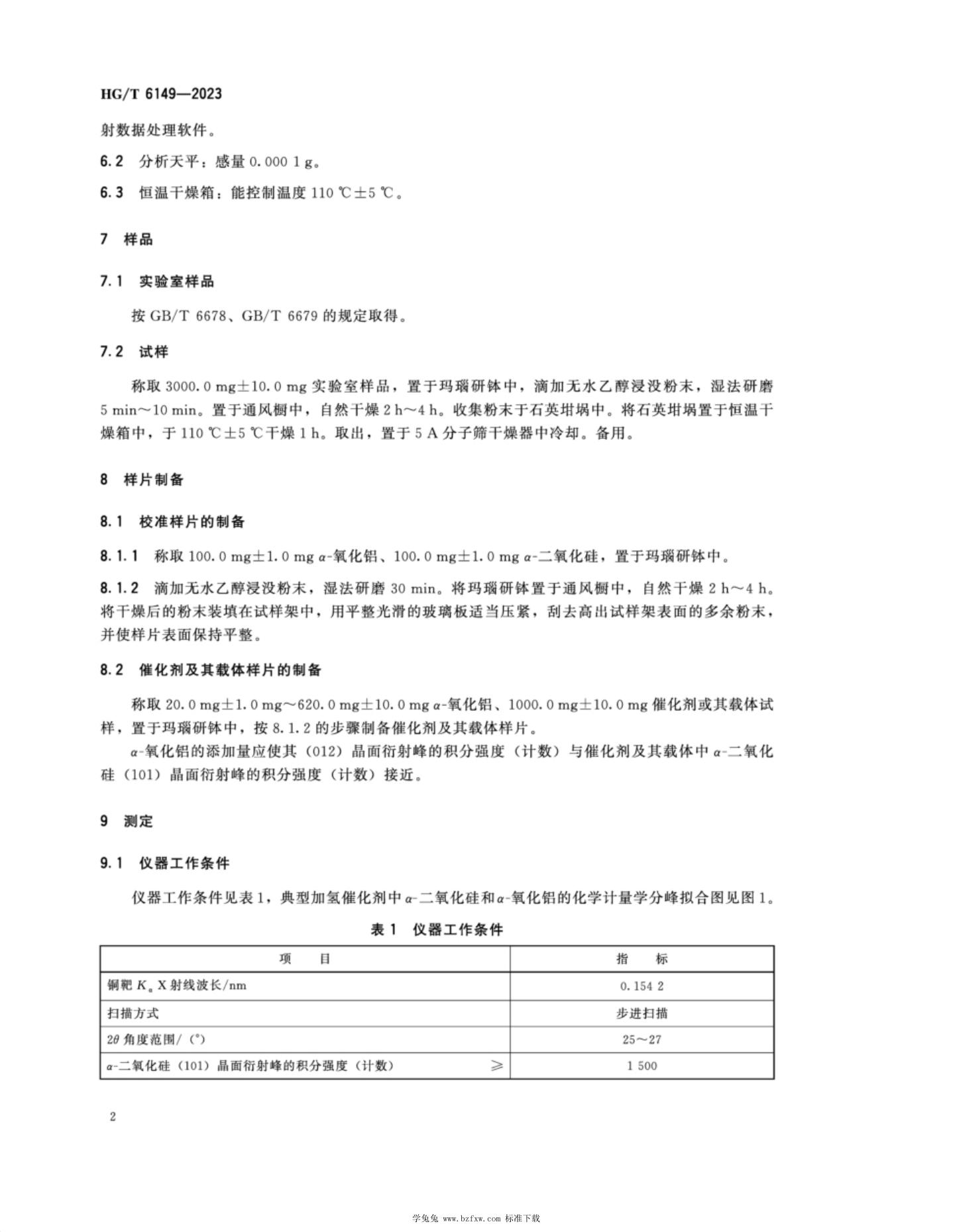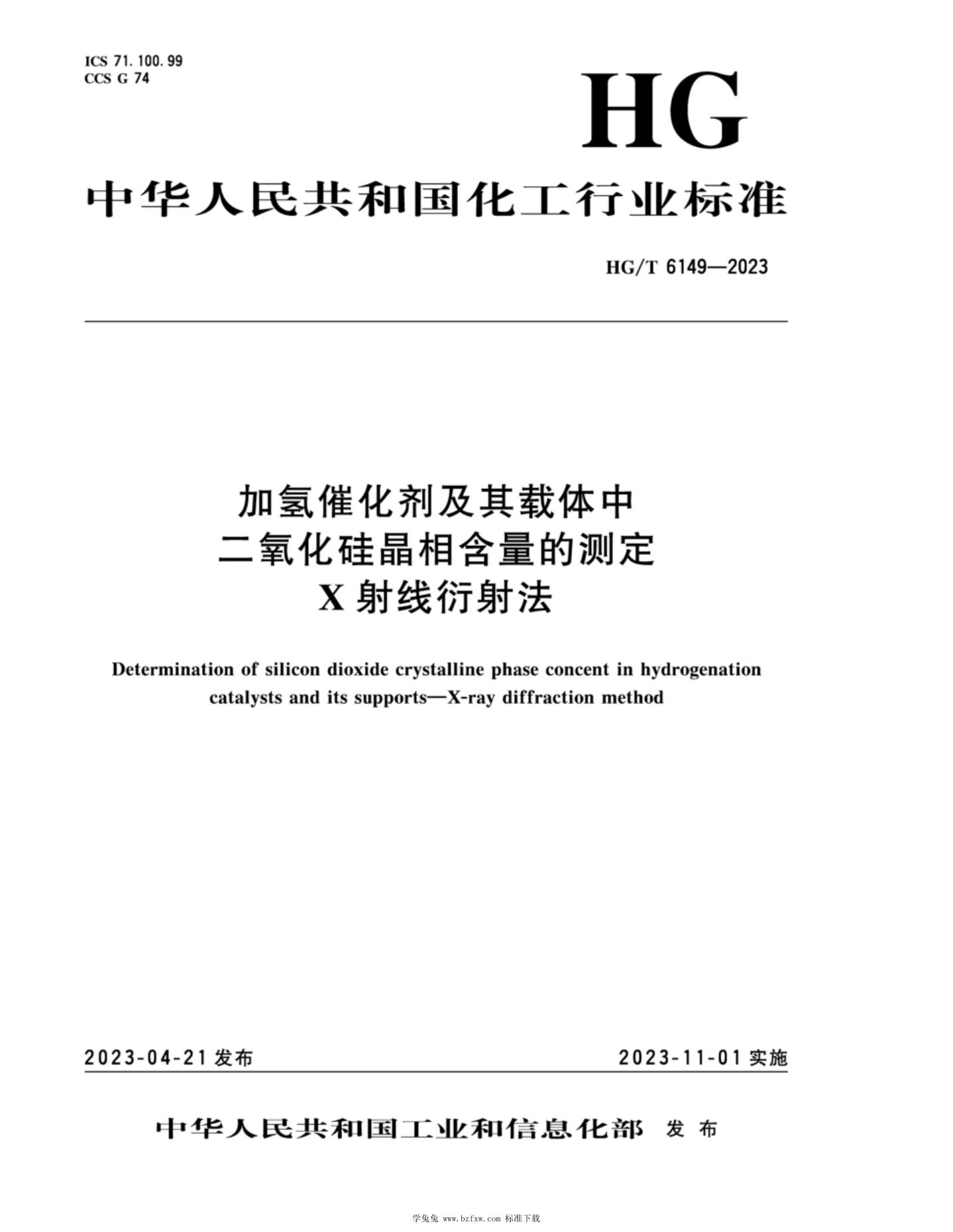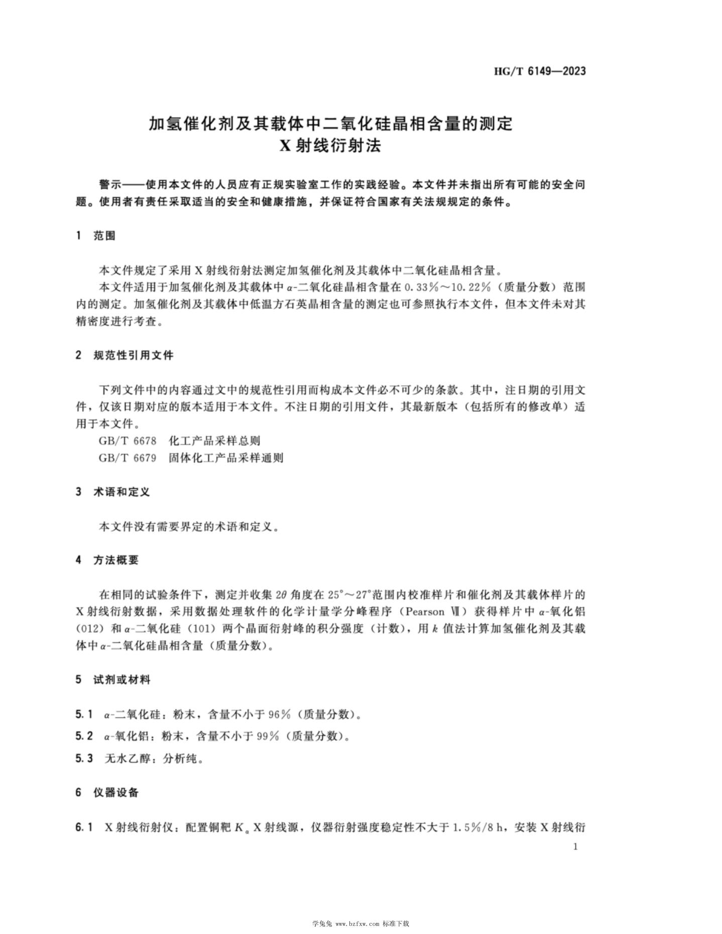 HG/T 6149-2023 加氢催化剂及其载体中二氧化硅晶相含量的测定 X射线衍射法