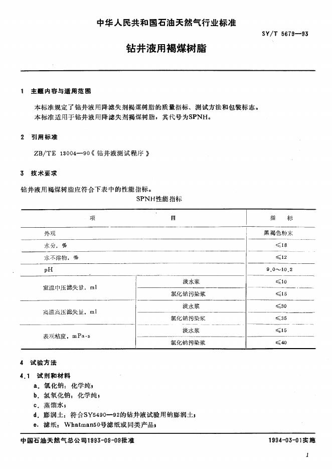 SY/T 5679-1993 钻井液用褐煤树脂SPNH