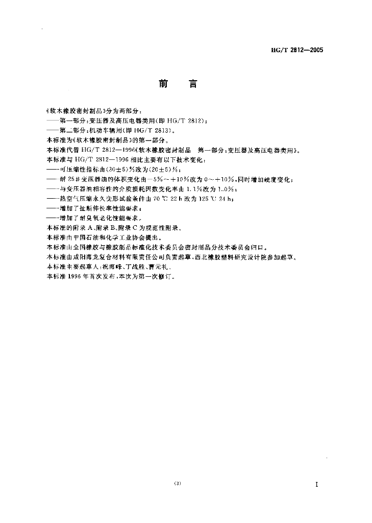 HG/T 2812-2005 软木橡胶密封制品 第一部分:变压器及高压电器类用