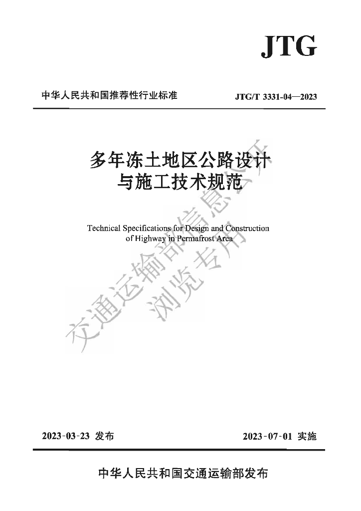JTG/T 3331-04-2023 多年冻土地区公路设计与施工技术规范