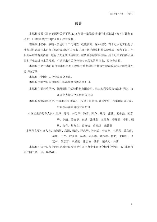 DL/T 5785-2019 水电水利工程化学灌浆材料试验规程(附条文说明)